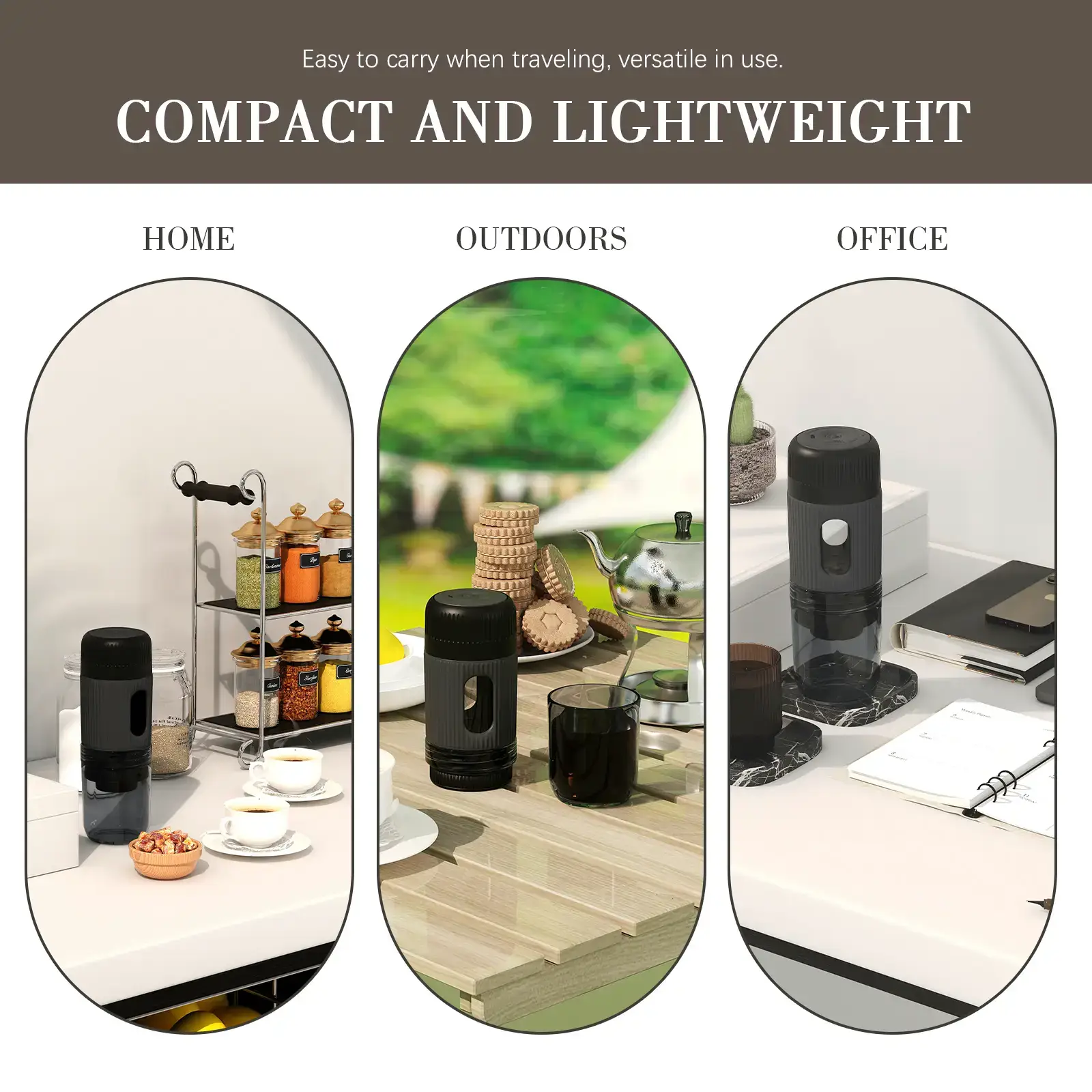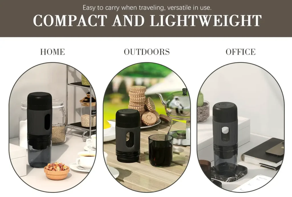 • *Portable & Wireless* 3.7V rechargeable lithium battery (Type-C fast charging), cordless design—brew coffee anytime, anywhere